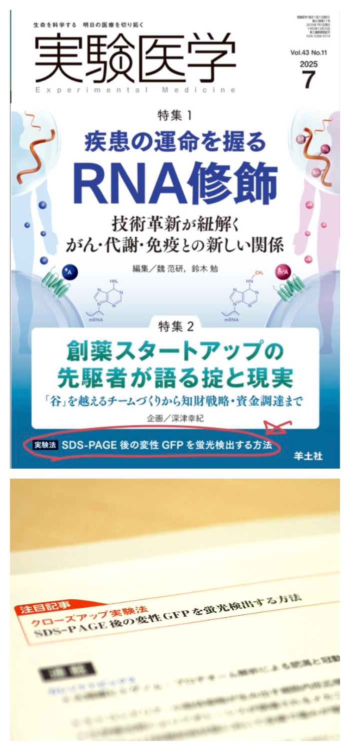 緑色蛍光タンパク質GFP(とその融合タンパク質)のゲル内リフォールディング法の解説記事が実験医学誌(クローズアップ実験法)に掲載されました。
